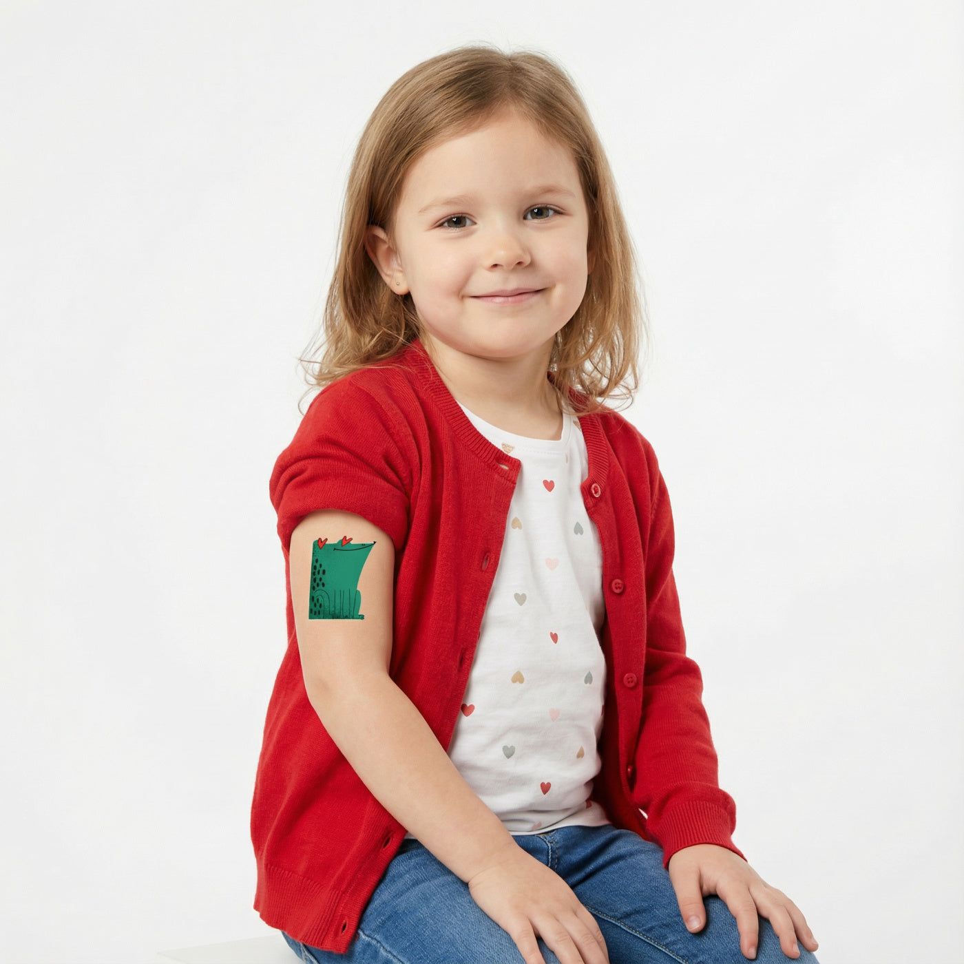 Press the tattoo onto clean skin, wet for 30 seconds, and peel to reveal your new froggy friend.